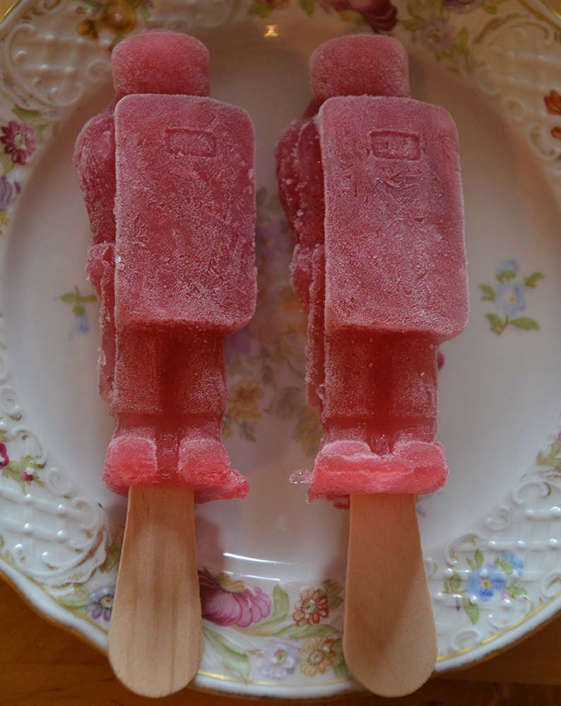 Plastikserie und Aktion, Maße: 11 x 4,5 x 3,5cm, Material: Wasser, Sirup, Holz