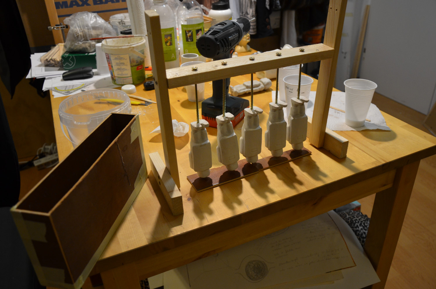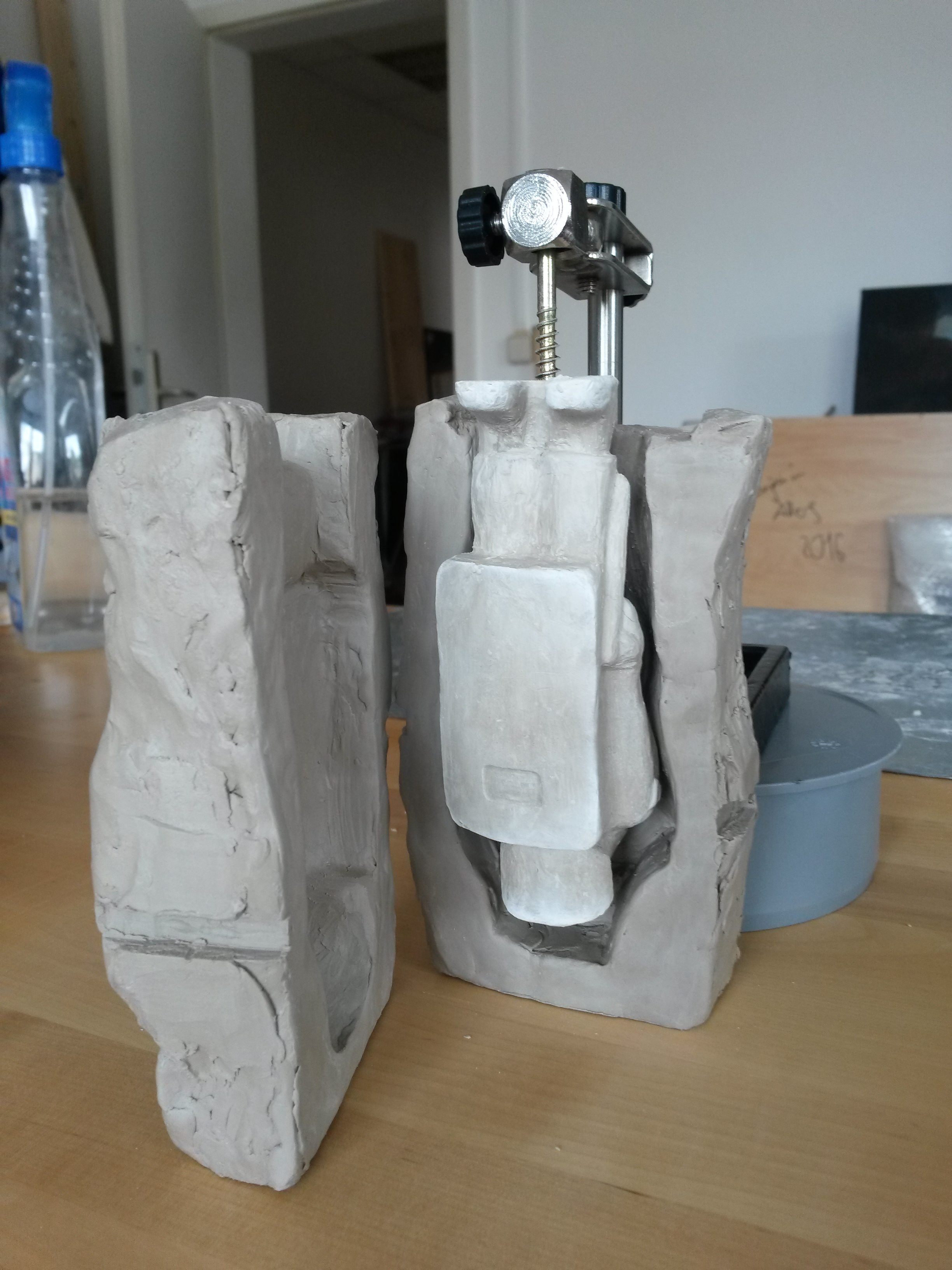 mehrteilige Aktion, die bisher aus einer offenen Fertigungsphase des Modells und der Silikonform, sowie