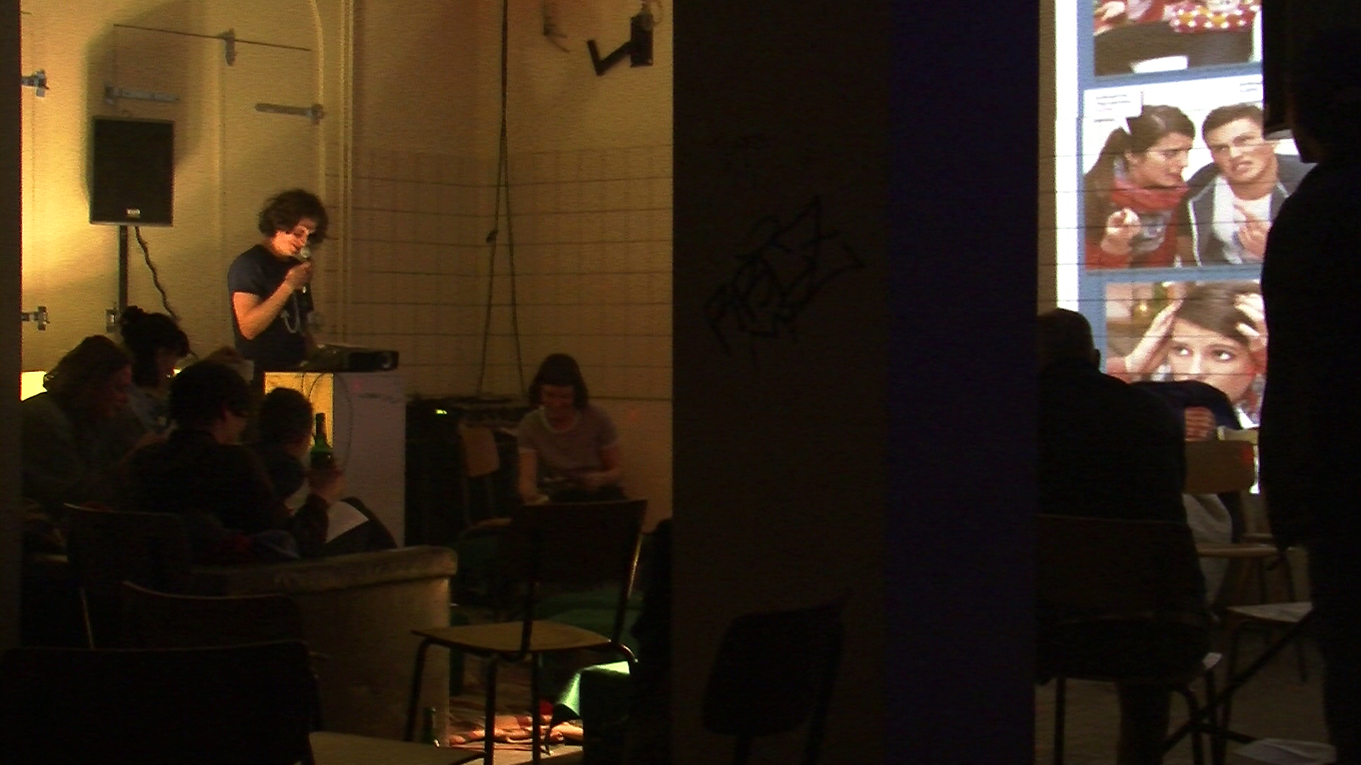 Performance & Projektion, Material: Beamer, Mikrofon, Wirtschaftsmagazin, Lautsprecher